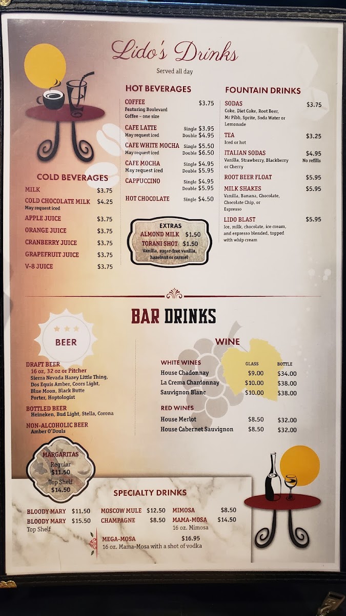 Lido Café and Bakery Menu